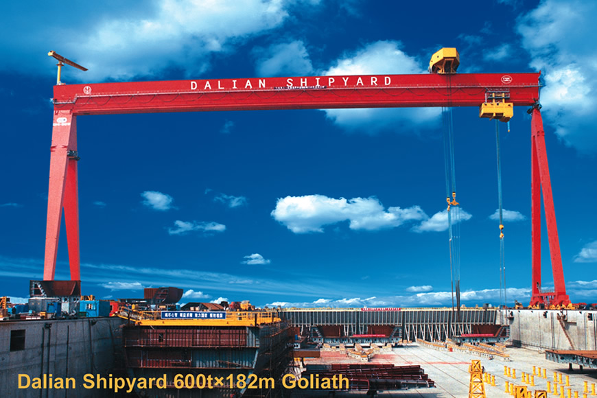 造船門式起重機是一種大起重量、大跨度,多功能、高效率的門式起重機,專用于船塢或船臺進行大型船體分段、對接及翻轉作業(yè)。 大連重工自1999年研制出全變頻調速造船門式起重機以來,積累了豐富的機電設計、結構分析計算、制造、運輸、安裝和調試經驗,形成了自主的核心技術,至今已研制了200—800噸等不同規(guī)格的造船門式起重機。