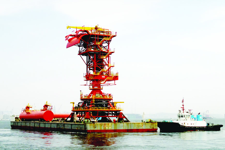 單點系泊是海洋石油開發(fā)工程中的重要設施之一。大連重工為中海油研制的單點系泊產品用于系泊海上石油加工處理裝置和油氣傳輸,設備總重為2144噸,企業(yè)承擔了單點系泊系統(tǒng)中建造工藝的制定、整體鋼結構的制造、全部鑄件的鑄造、全部鑄鍛件的機加工以及除管系和電氣設備外所有部件的裝配。